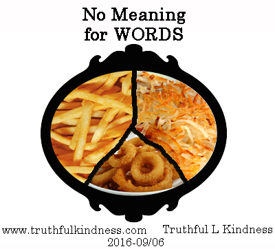 The waitress spoke; “Thank you, Ma’am. Do you want french-fries, hash browns, or onion rings to go with your meal?” … But I could not bring up memory concept for any option but onion rings, and that was just round crunchy things that I knew I could not have. The other words had no meaning.