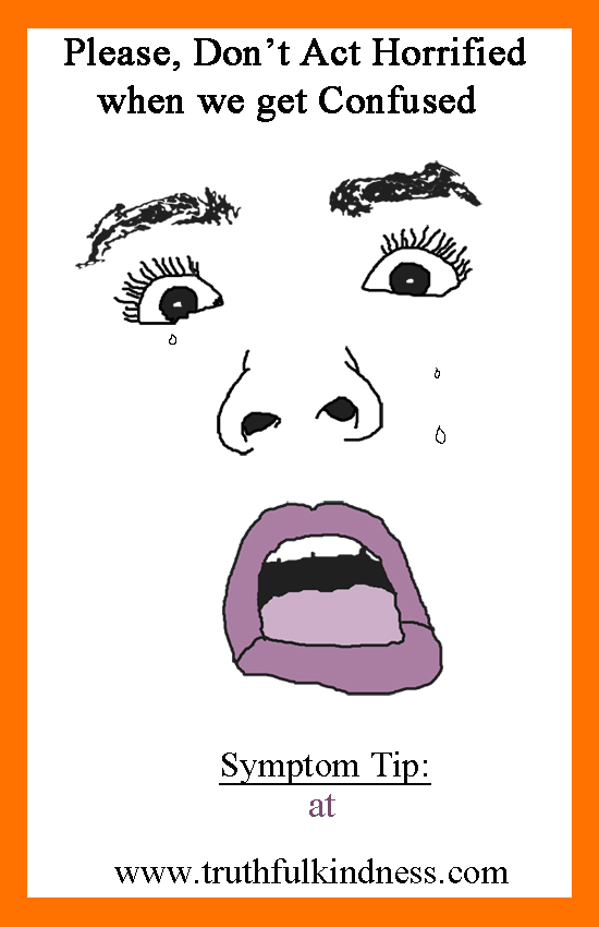 Cathy Carvalho Mazzie “Don’t Act Horrified” >> https://truthfulkindness.com/index-persons-with-dementia-pwd/cathy-mazzie/dont-horrified/