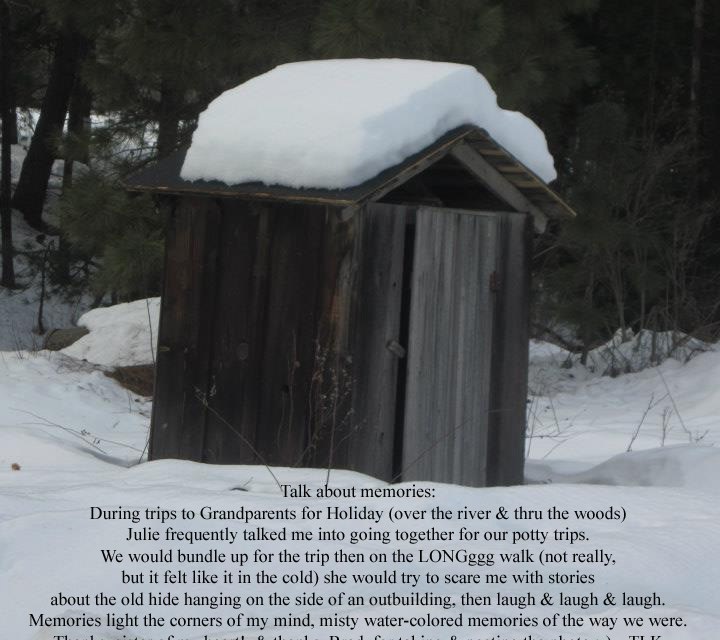 (and in fact we used an outhouse during visits at my grandParent’s house until the late 1970s when a real toilet was installed inside the house).