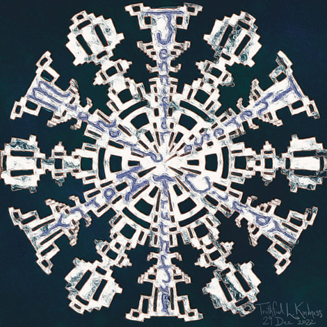 SHARE dementia awareness thru buttons below. Subscribe “FOLLOW” button is at the very bottom of the page, with “Category” Links, “Recent Posts” and “Archive”. If you put your eMail address there you should get an eMail each time i write a blog entry. Feel free to leave your thoughts in the form of comments, but please filter your comments with truthful loving kindness to all concerned. … *** … If there is an advertisement below, I have no control over what is shown. My own full legal name is Truthful Loving Kindness. My current diagnosis is still Mild Cognitive Impairment, but i have cerebrovascular disease and Lewy Body Dementia symptoms very slowly advancing. Current theory for cause of my dementia symptoms is over 30 years before diagnosis and treatment of Lyme and Babesia — plus probable nocturnal seizures. … ******* … Text Copyright © Truthful L. Kindness on 30Dec2022. Featured image is Digital Painting by Truthful Kindness on 29Dec2022 using iPad ProCreate app. This is a SnowFlake with names of folks included on newest Pgs. ((Spent ~11hrs on this art project and still not happy with it.)) … ******* … i dont mind re-posting of things i write, but if you re-post then i expect you to make it clear this is NOT written by you. My authorship as Truthful Kindness (my legal name) must be clearly identified, and provide very prominent Link to my website so that questions and comments can be addressed to ME personally at http://www.truthfulkindness.com . .