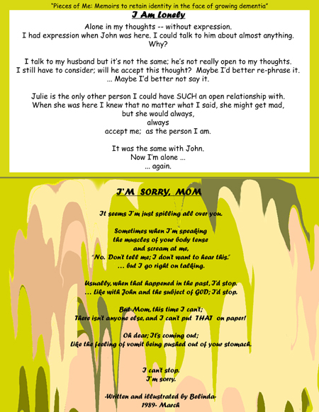 * Admin issues: SHARE dementia awareness thru buttons below. Feel free to leave your thoughts in the form of comments, but please filter your comments with truthful loving kindness to all concerned. If interested in receiving notice of future blog postings, subscriptions are available through a “follow” button in the upper left corner (MS Explorer) or lower right (Safari, Mozilla Firefox and Chrome). If there is an advertisement below, I have no control over what is shown. My own full legal name is Truthful Loving Kindness. My current clinical diagnosis is Mild Cognitive Impairment but this page was written and illustrated by me. Written in March of 1989, before I had dementia symptoms, but when I was working thru many grief issues. Copyright on that date.