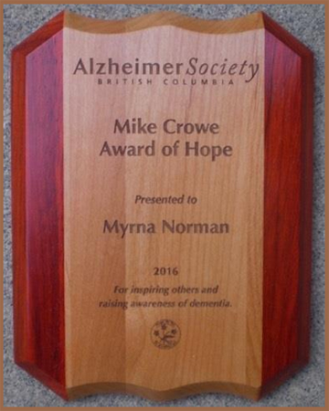 “PWD Perspective” Contributions from other Persons With Dementia (PWD): Myrna Norman,