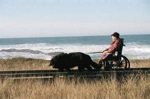 Six weeks is a remarkably short training time. The Delta Society estimates 4-12 months training, and Assistance Dogs International expects 120 hours over 6 months, but you need to remember several things: 1) The Newf was bred to pull; to pull people and boats in the water, and loads of fish on land. 2) Hero had six months of intermittent cart training before we got the wheelchair –and all newfs that I know of required very little training for their mobility tasks. I think Blessing must have loved pulling a wheelchair even before she was born! 3) I believe that G0d didn’t make Hero to be hit, he was created to be my partner, so very little time was required.