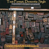 Text Format – My Dementia Style Posted on March 4, 2019 by truthfulkindness Do these format changes make understanding more difficult, or easier for my friends with dementia ??